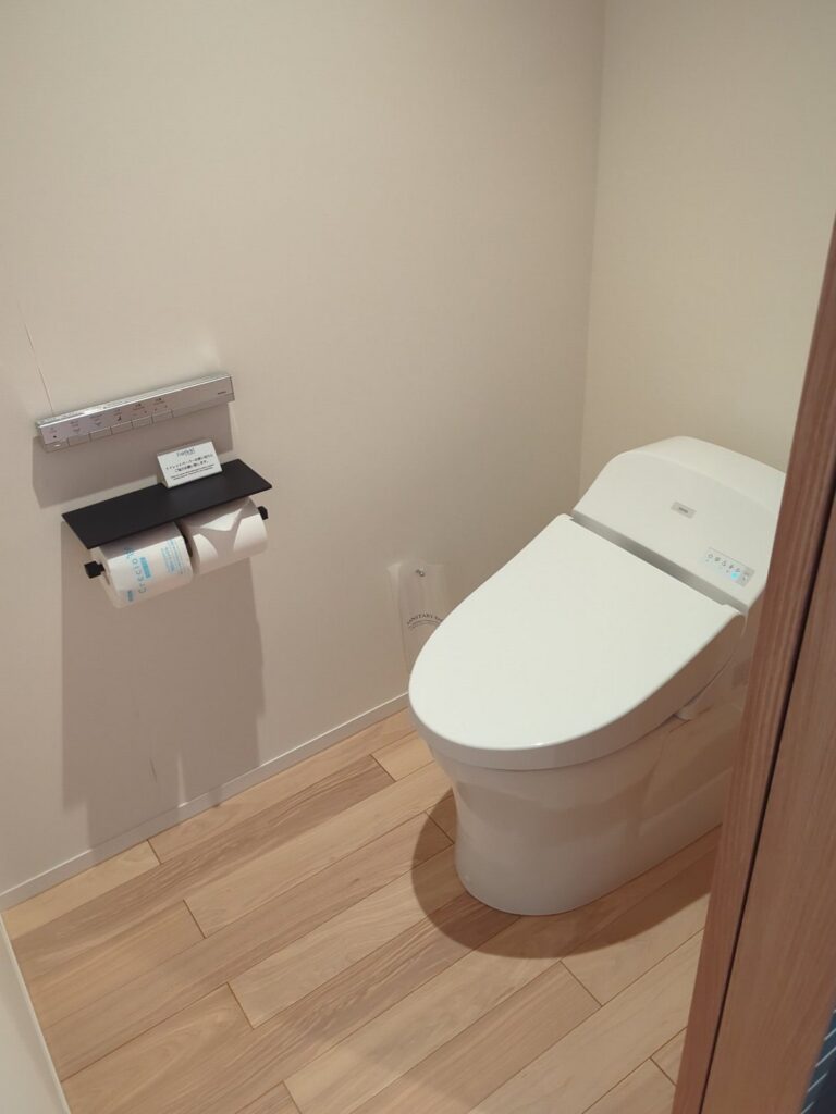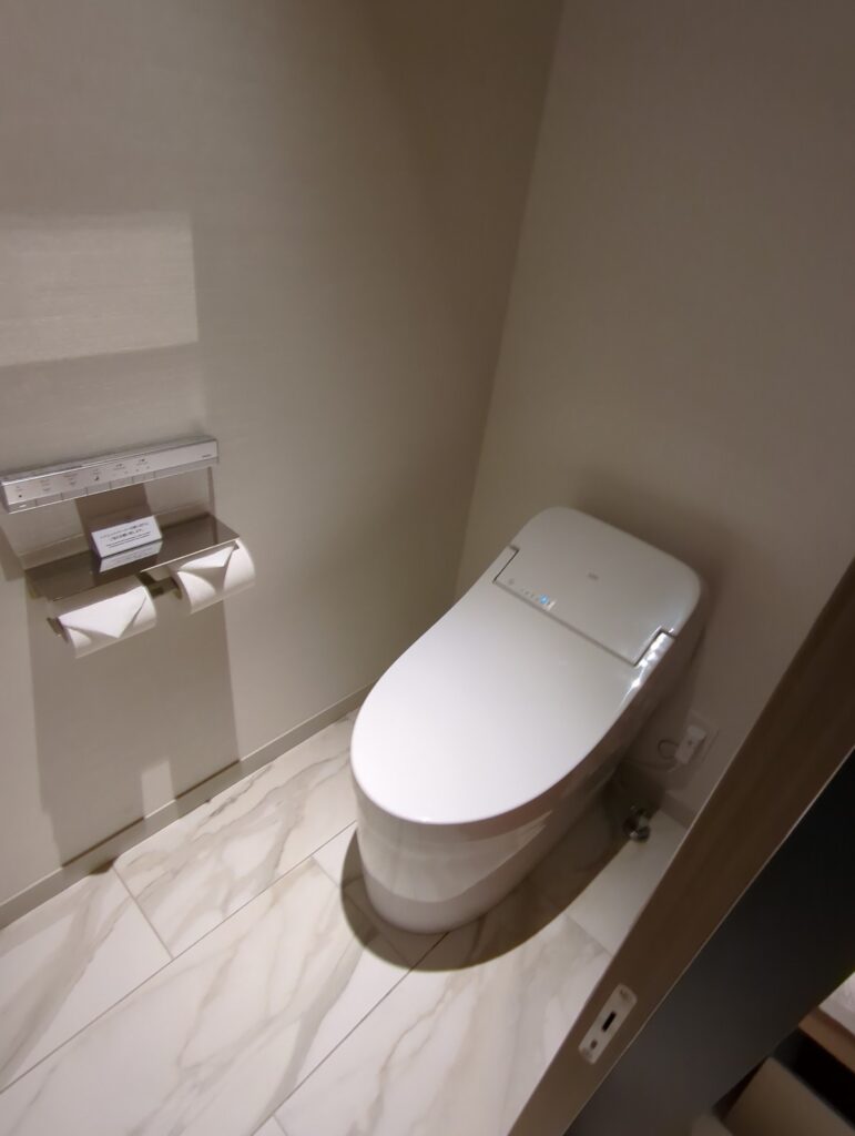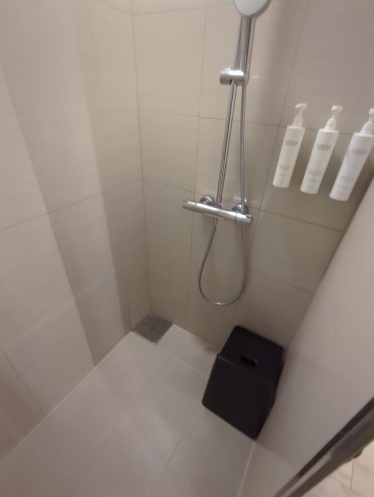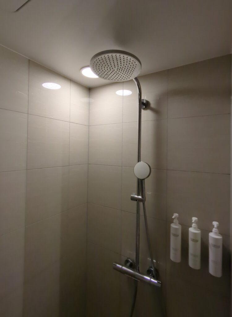 バスルームはシャワーとトイレが独立しておりそれぞれ独立した扉が設置されています。シャワーは通常のシャワーヘッドのほかレインシャワーも設置されていました。バスタブがある部屋もあるようですが今回のお部屋はありませんでした。
