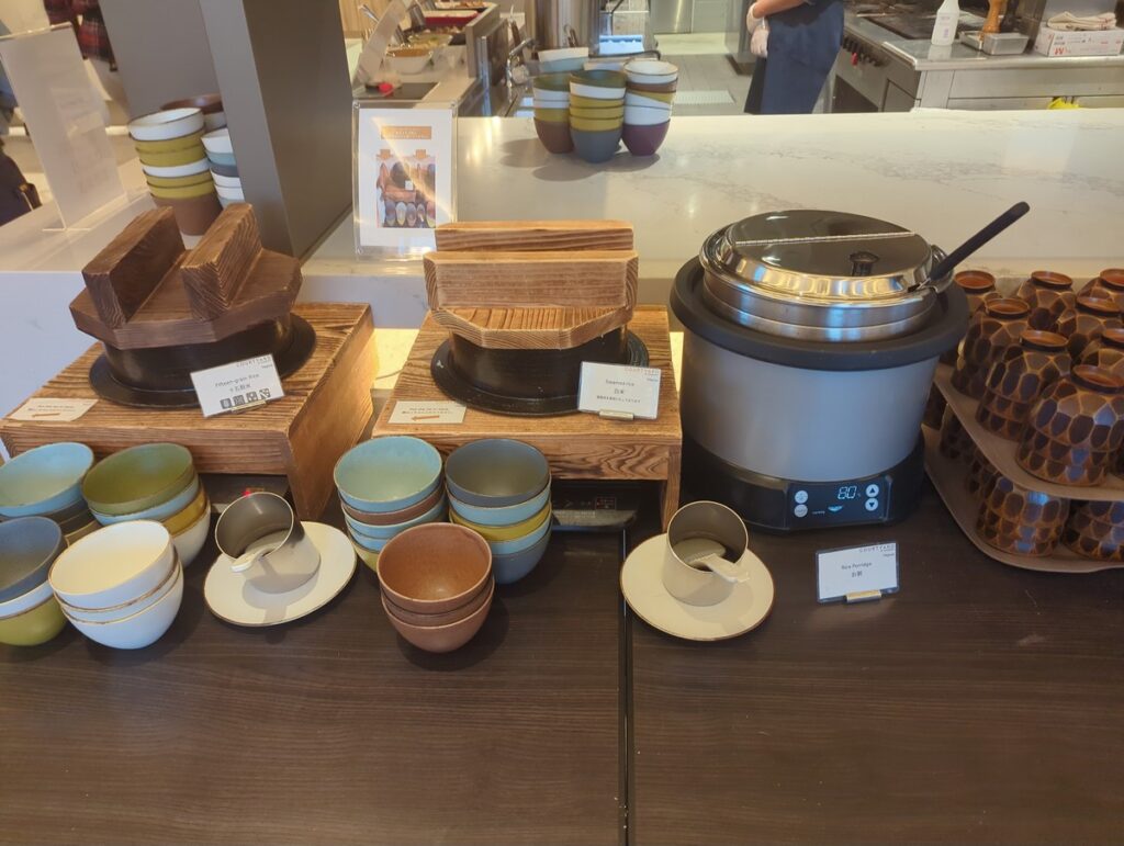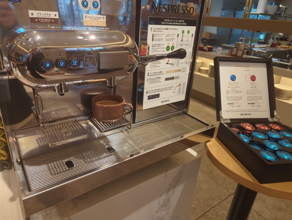 CRUSTの朝食ビュッフェは、洋食の定番を押さえつつ和食も用意されています。野菜や果物も充実しており長期滞在でも飽きません。コーヒーはネスプレッソのマシンが用意されています。